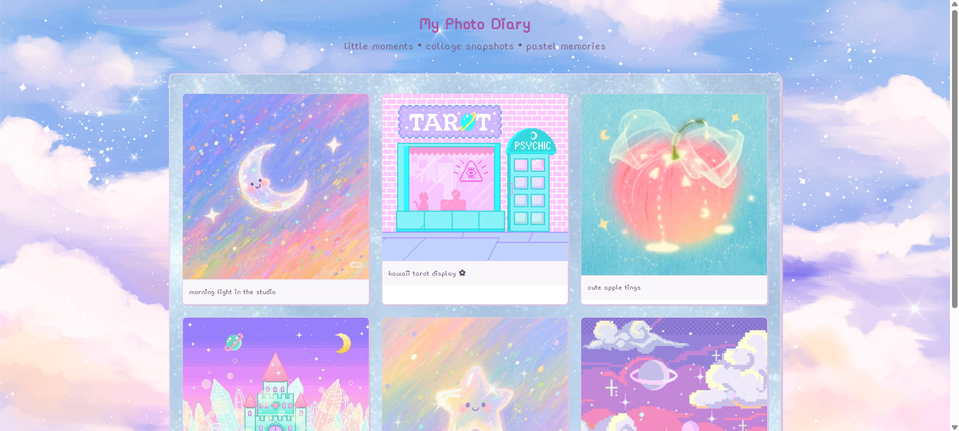 This is a Kawaii Photo Diary Website Template made with HTML and embedded CSS code. You will receive a doc file where you can copy and paste the code. You can use it for neocities, nekoweb, or your own personal coded website. IT IS ONLY ONE PAGE! All images are adjustable and can be linked to any other page that you create. The images show up as the shape that they are.If you dont have word to open the document file of the code, open it with google docs/google drive.
