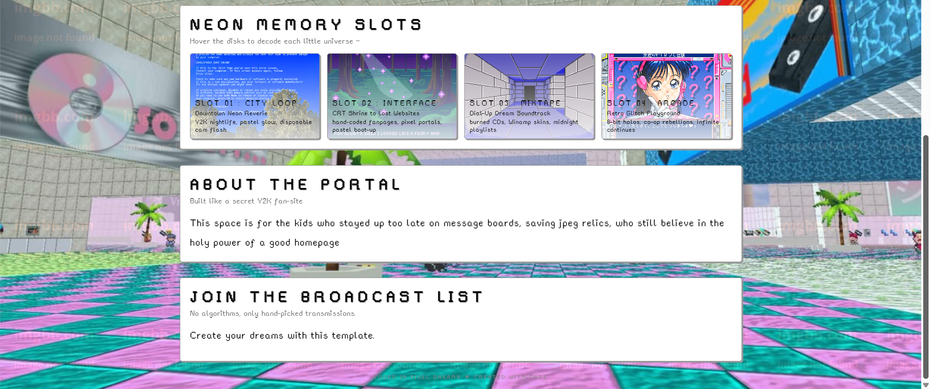 This is a Y2K Cybercore Website Template made with HTML and embedded CSS code. You will receive a doc file where you can copy and paste the code. You can use it for neocities, nekoweb, or your own personal coded website. IT IS ONLY ONE PAGE! All images are adjustable and can be linked to any other page that you create. The main header image is a gif. If you dont have word to open the file, open it with google docs/google drive.